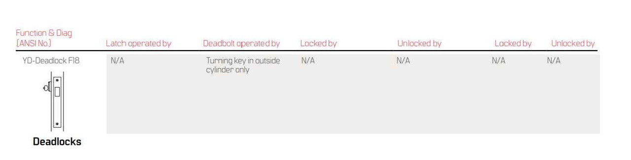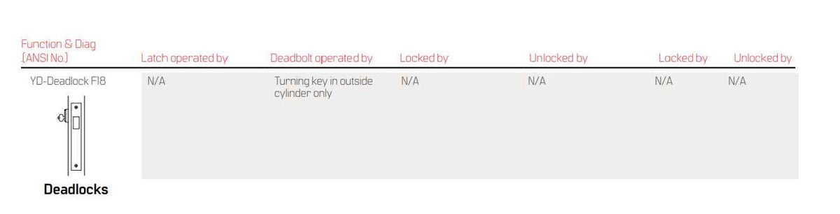 45H-7-YD Deadlock Function - Mortise Lockbody Only Field Reversible
