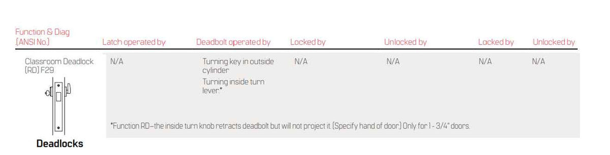 Door Thickness – Standard lock configuration designed for doors 1-3/4" thick. Thick door configuration available for doors up to 5" thick (specify thickness when ordering).