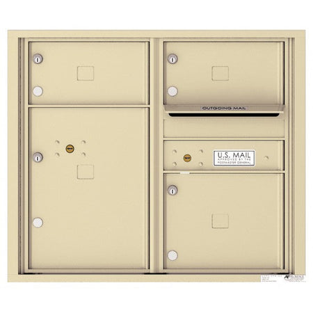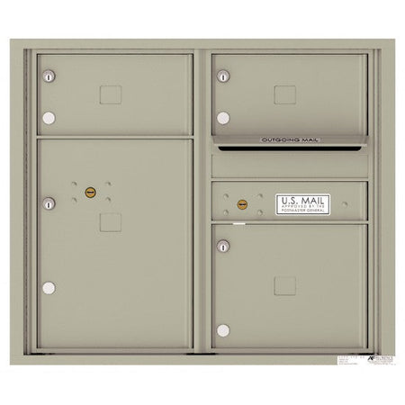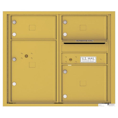 4C07D-03 - 3 Oversized Tenant Doors with 1 Parcel Locker and Outgoing Mail Compartment - 4C Wall Mount 7-High Mailboxes