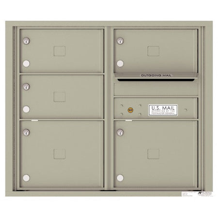 4C Mailbox with 5 over-sized tenant compartments and 1 outgoing mail compartment. 4C mailboxes are USPS Approved and meet or exceed STD-4C requirements for new construction and major renovations. They are also ideal for private delivery applications.