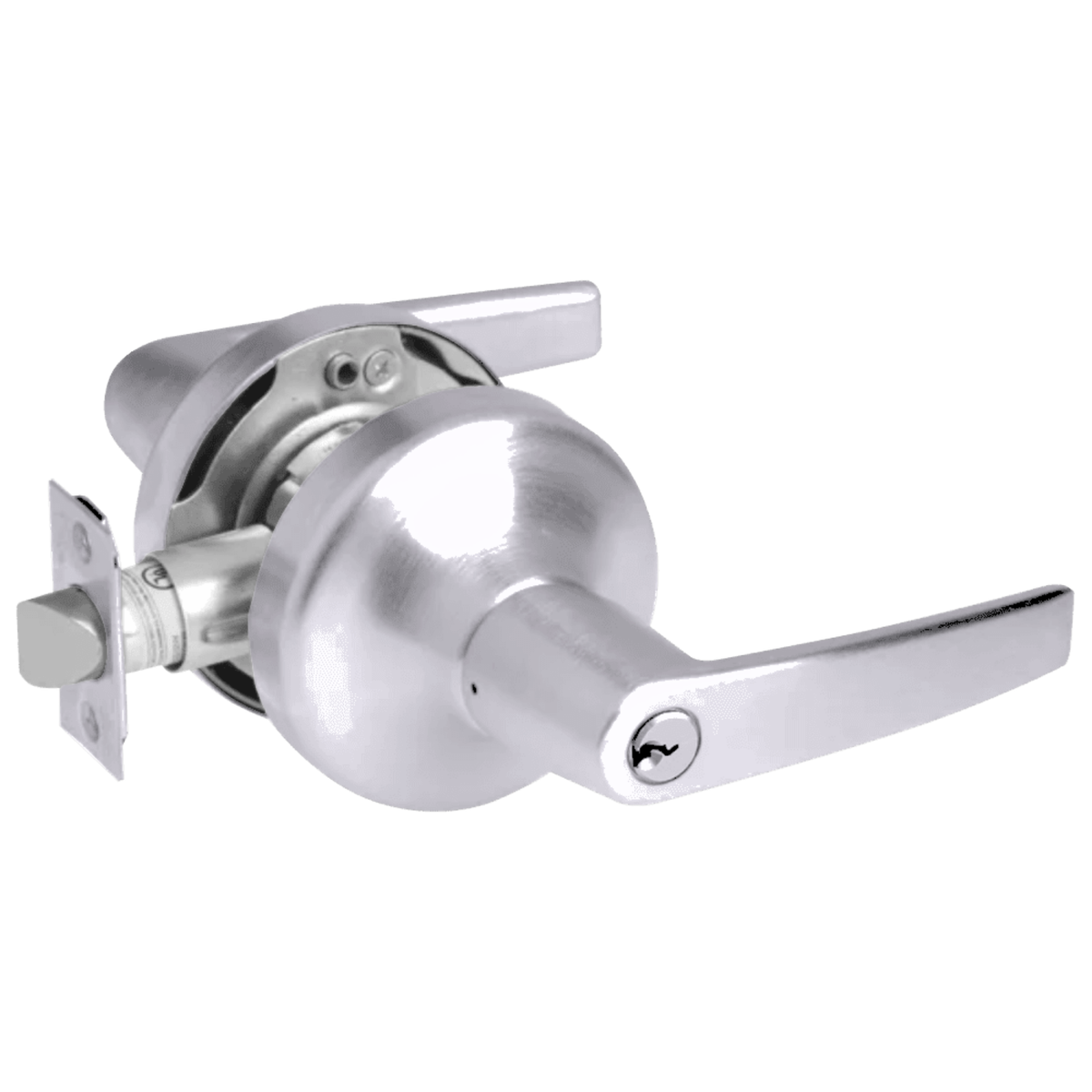 - Latchbolt operated by key in lever from either side.