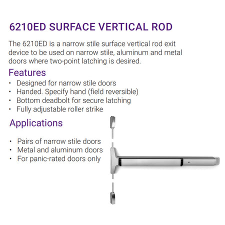 TITLE TAG: Accentra 6210 Series Narrow Stile Pushpad Surface Vertical Rod Exit Device