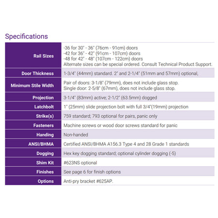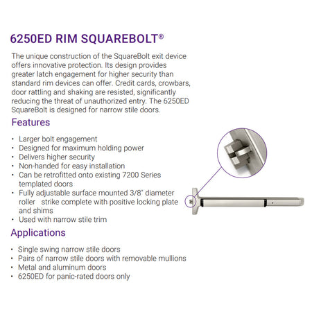 TITLE TAG: Accentra 6250 Series Narrow Stile Pushpad Rim Squarebolt Exit Device