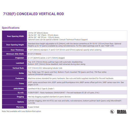 🔒 Model Highlight: 7120(F) Concealed Vertical Rod Exit Device