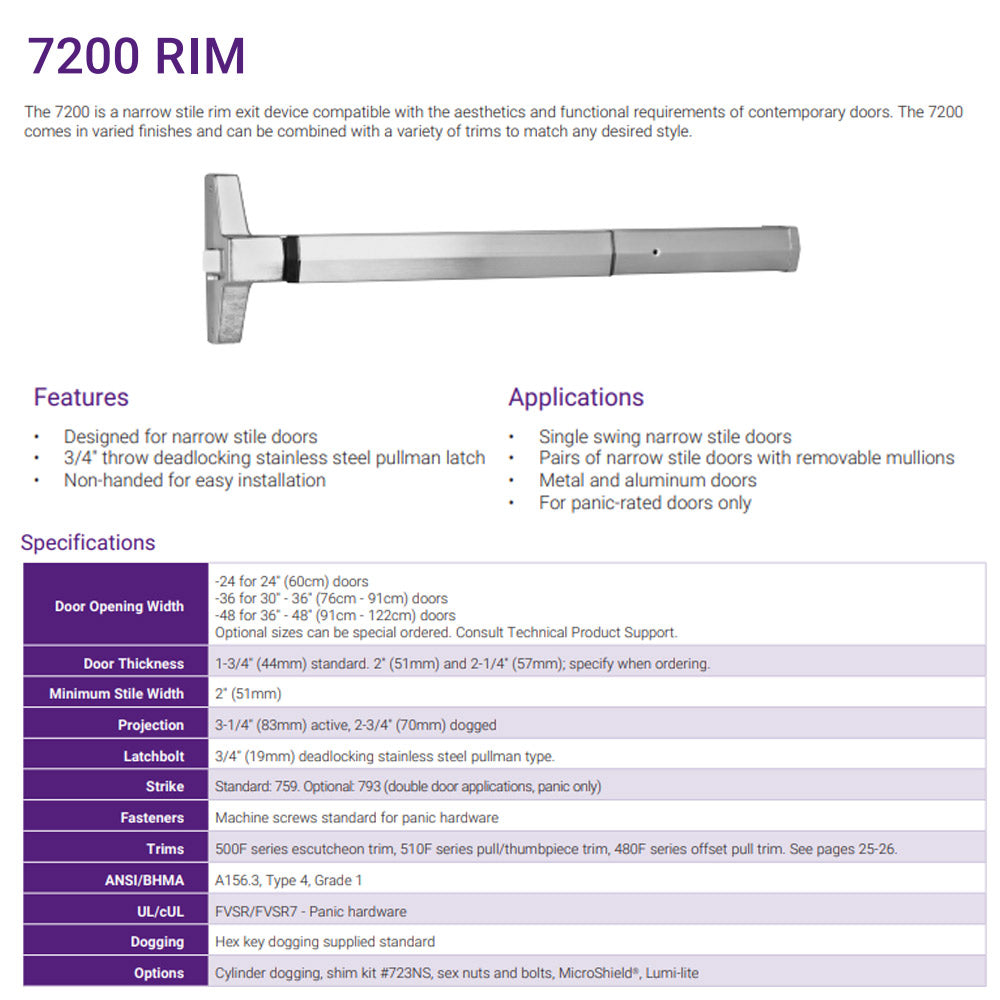TITLE TAG: Accentra 7200 Series Narrow Stile Rim Exit Device