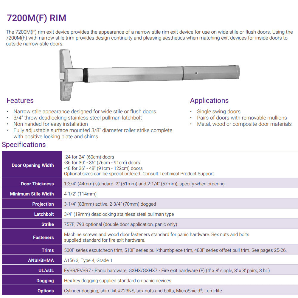 TITLE TAG: Accentra 7200M Series Narrow Stile Rim Exit Device