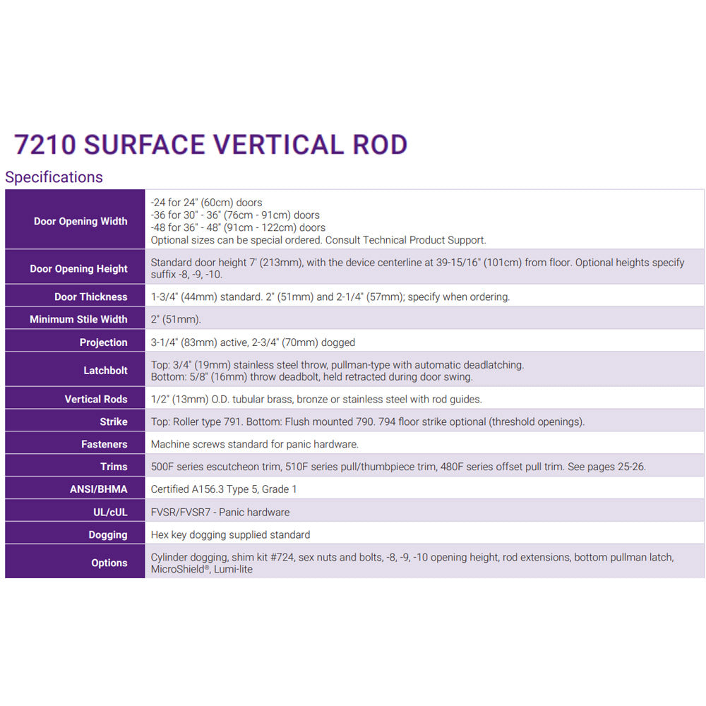 TITLE TAG: Accentra 7210 Series Narrow Stile Surface Vertical Rod Exit Device
