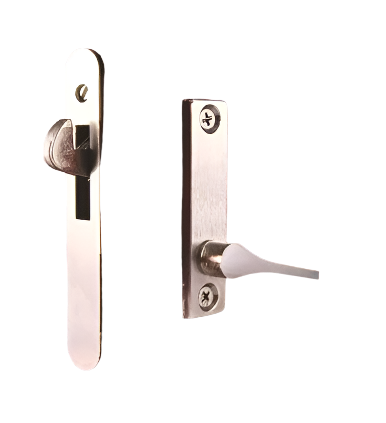 For wood framed sliding doors, the 5500 Deadlock features the 5017 Deadlock/Latch which provides the same 1000 lbs strength that the MS1847 Deadlock/Latch provides for metal stiles. The bolt throw is easily adjusted by means of a screw in the faceplate. Mounting is by through-bolts, which also secure the inside 1004 Turn Lever and outside 1016 Blank Plate escutcheon. The package incorporates the 1004 Turn Lever an oversized thumbturn operator on the interior, coupled with the 1016 Blank plate escutcheon with an emergency override access location on the exterior.
