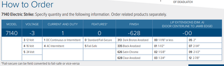 Modular Packaging: Match one strike body kit with one faceplate kit to make a complete electric strike. Faceplate kits contain all hardware to mount electric strike. Please contact factory or sales representative for details.