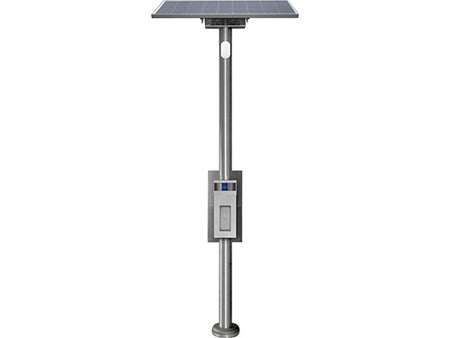 The TWS-Z2 is a Solar Tower with Hooded Emergency Wall Box with 2 solar panels for zones rated 2.0-3.9. The solar tower can be used where running wire is challenging or impossible and is equipped with batteries to power the intercom and beacon/strobe light when solar power is not available. The tower is manufactured by Sun Surveillance and includes an Aiphone WB-HE wall box for an Aiphone IX | IXG Series emergency station along with a Ubiquiti wireless access point to supply network connectivity to the tower.