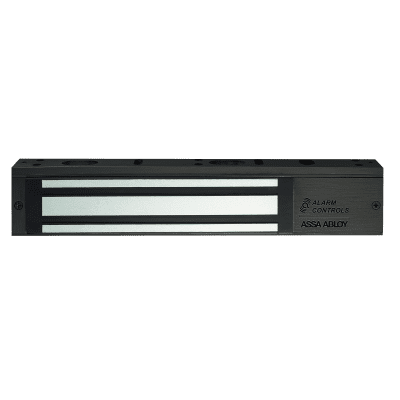 Bracket mounted, single magnetic lock with 600 lbs holding force that can be easily installed without special tools and used with any access control system. Ideal for high-use areas for traffic control in interior applications. Available with LED, bond sensor and door status signalling options.