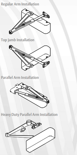 Non-handed for regular, top jamb and parallel arm mount applications.