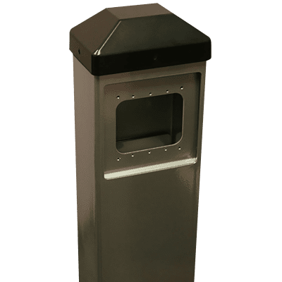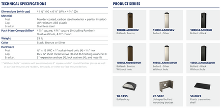 Bollards are compatible with a variety of push plate shapes and sizes, as well as wireless transmitters.