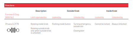 Options: KNL– Knurl keyed knob, L8– drive in-latch. Roses: C– 2 9/16" Dia. D– 3 3/8" Dia. Mounting screws concealed.