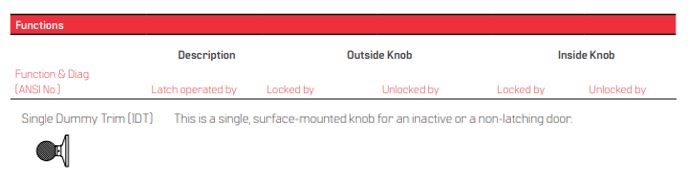 BEST 6K (1DT) Single Dummy Trim Function Grade 2 Non-Keyed Knob Locks