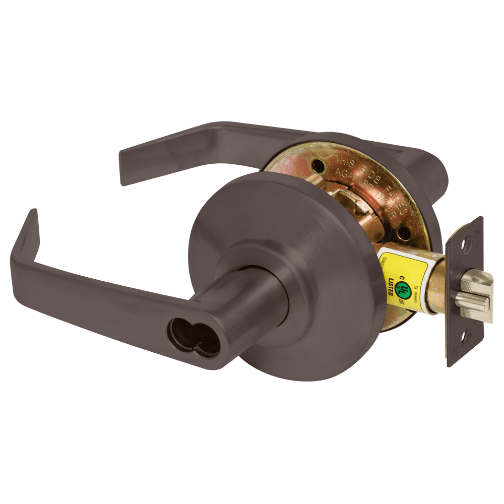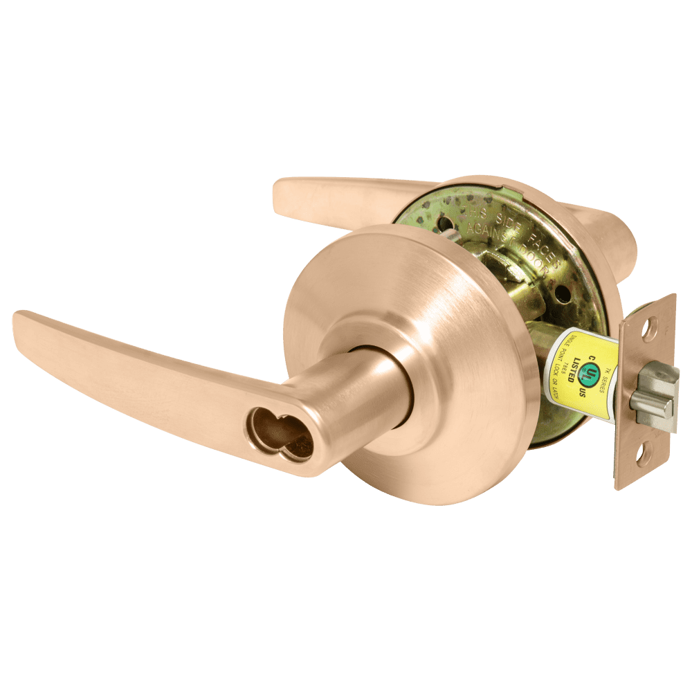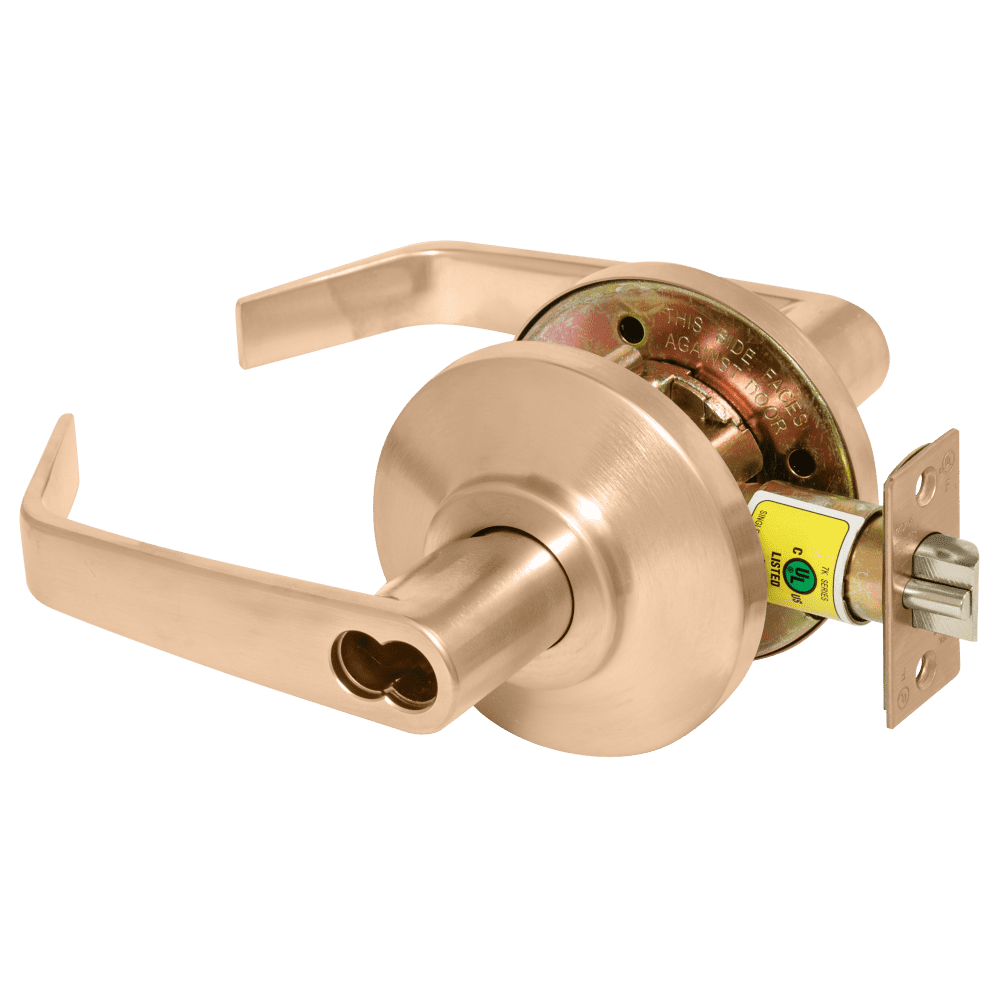 Interchangeable core –  Solid brass, pin-tumbler type in lever with 7-pin core. BEST Patented Keying System optional.
