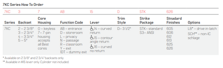 7KC series – Listed by BHMA for A156.2, Series 4000, Grade 2.