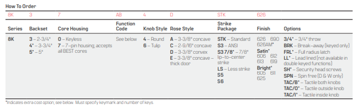 The 8K is a Grade 1 heavy-duty cylindrical knob set. BEST 8K locks are not only designed to last and protect, they’re also simple to install, retrofit, rekey, and use. Premium workmanship and carefully designed components ensure that 8K locks perform—easily but reliably—over the long-term.