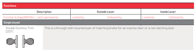 Lock and latchsets: Sets consist of latch complete with trim. Type and operation according to set number. Set also includes interchangeable core and two nickel silver keys, keyed to your system.