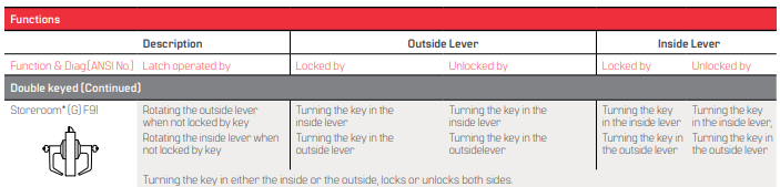 - Florida Building Code and Miami-Dade County Code: 9K series – 9/16” latch throw – Listed by Florida Building Code and MiamiDade County at ± 75 PSF for single doors. 9K series – 3/4” latch throw – Listed by Florida Building Code and Miami Dade County at ± 80 PSF for single doors and ± 50 PSF for double doors. “WS” option must be ordered for the lock to include a “Miami-Dade County Product Control Approved” label for inspection purposes.