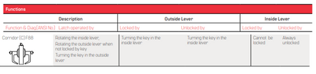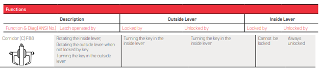 - The innovative design of the slotted key release cam and locking lug assembly create maximum attack resistance. Even though damaged, the lock still allows key access. In addition, the lever is fully functional from the inside. The hub-mounted torsion spring and strong retractor springs help prevent lever sag and offer a smooth and snappy operation.