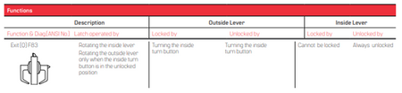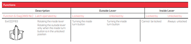 • The innovative design of the slotted key release cam and locking lug assembly create maximum attack resistance. Even though damaged, the lock still allows key access. In addition, the lever is fully functional from the inside. The hub-mounted torsion spring and strong retractor springs help prevent lever sag and offer a smooth and snappy operation.
