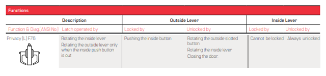 BEST 9K (L) Privacy Function- Grade 1 Cylindrical Non-Keyed Non-Latching Lever Lock