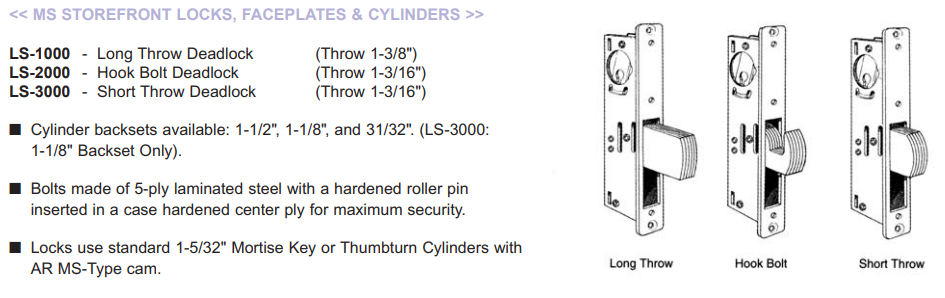 • LS-1000 - Long Throw Deadlock (Throw 1-3/8")