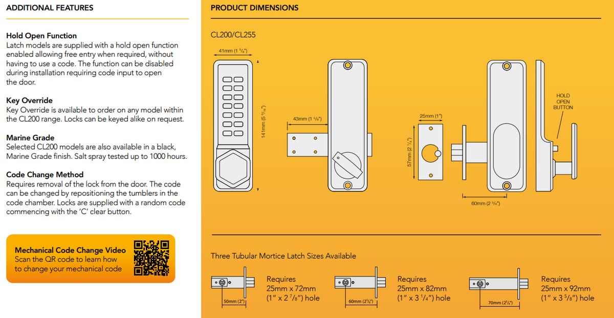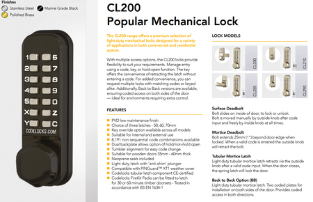 They’re the same tough, convenient, easy-to-use locks with a finish to match. Key benefits such as the limited lifetime guarantee** are still applicable to the Marine by Codelocks range, not to mention the renowned Codelocks technical support available via phone, email or our support site.