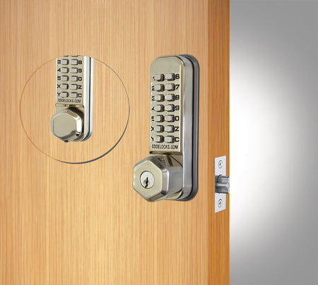 Tubular latch. Two coded plates for installation on both sides of the door. Provides coded access in both directions. Key override is available to order on compatible models within the CL200 range. Locks can be keyed alike on request.