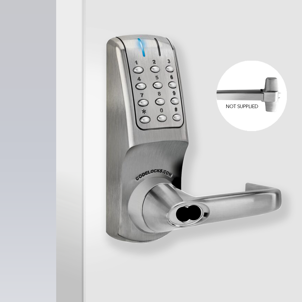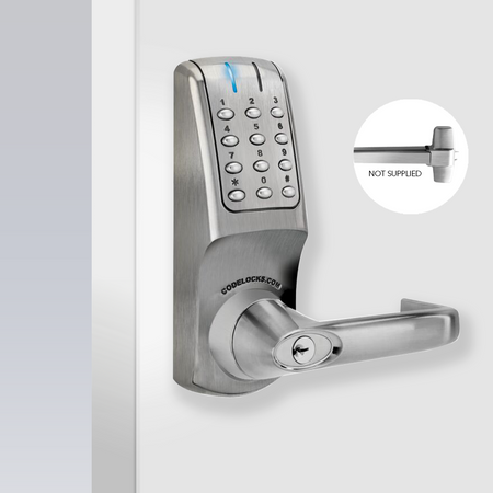 The ultimate standalone electronic door lock. Heavy duty locks for use in high traffic applications. Particularly suitable for use in health, educational, commercial and residential environments. Front plate only. Install with new or existing panic access equipment. The follower on the panic equipment must return to square to align with follower on the lock. Code Free option can also be programmed via the keypad. Now available in Solid Black finish.