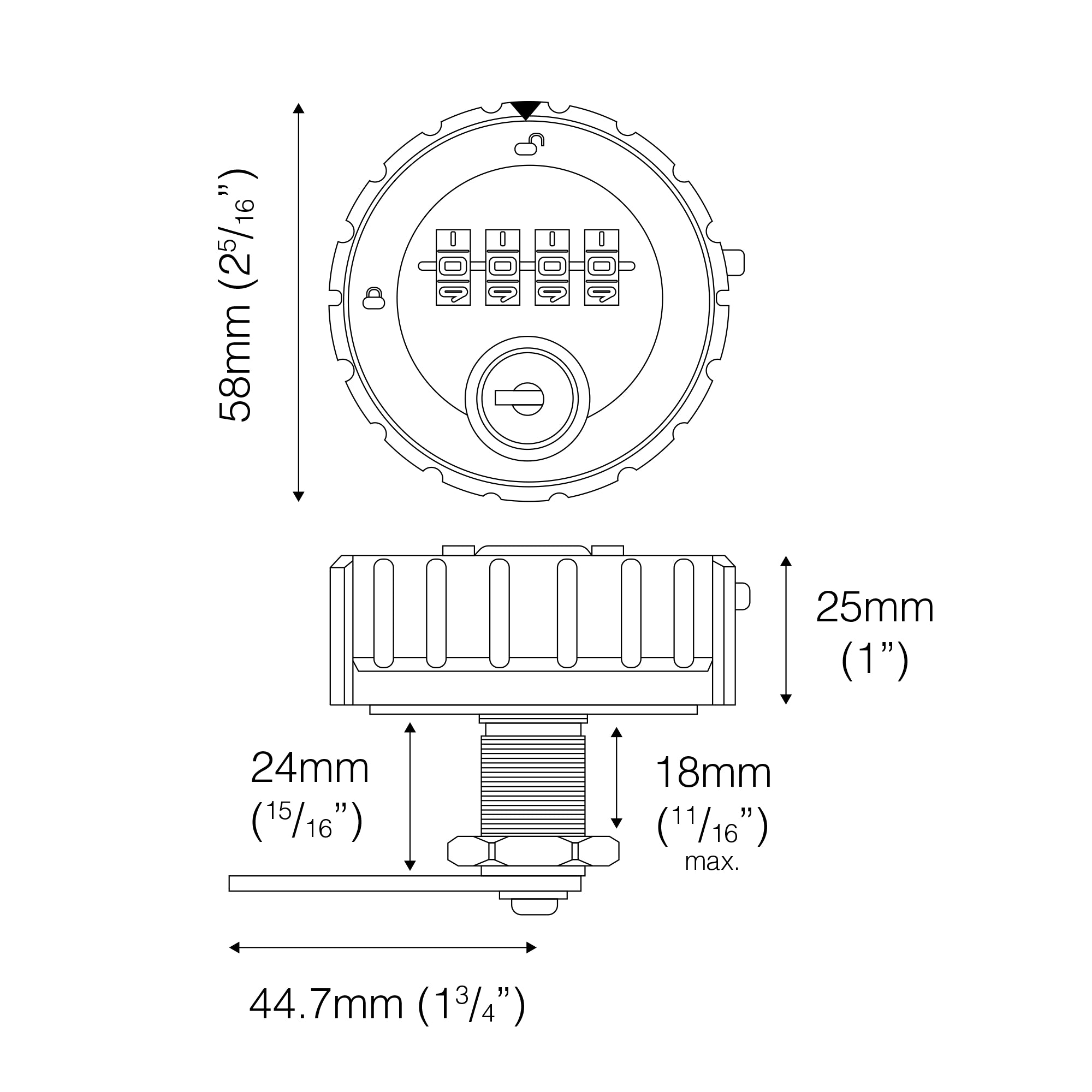 A durable, compact, easy to use mechanical lock. Designed to be both retrofitted or installed on new cabinets. Changing or resetting the code can be completed easily whilst the lock is still on the door, or if the code has been forgotten it can be retrieved using the Code Finding Key (sold separately).