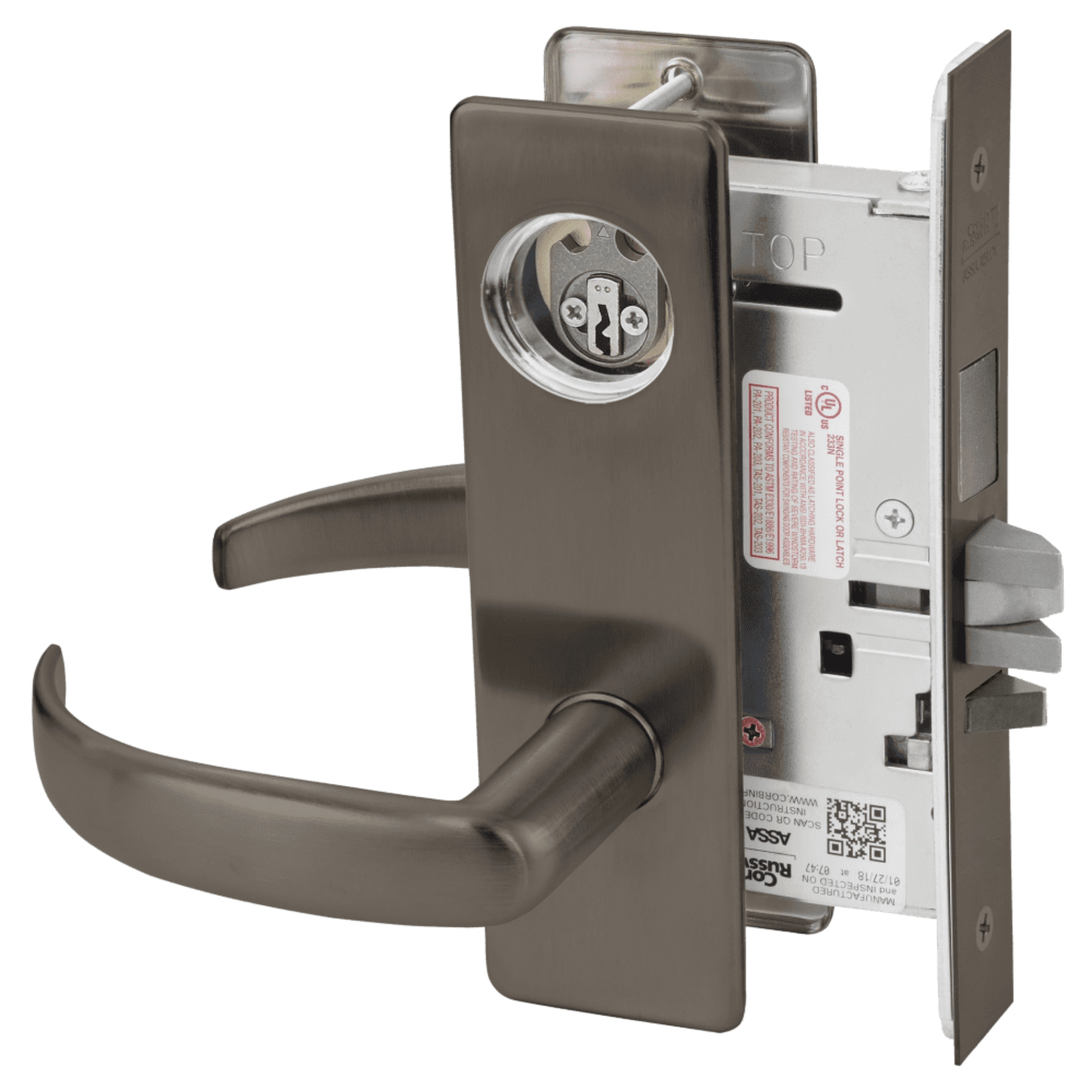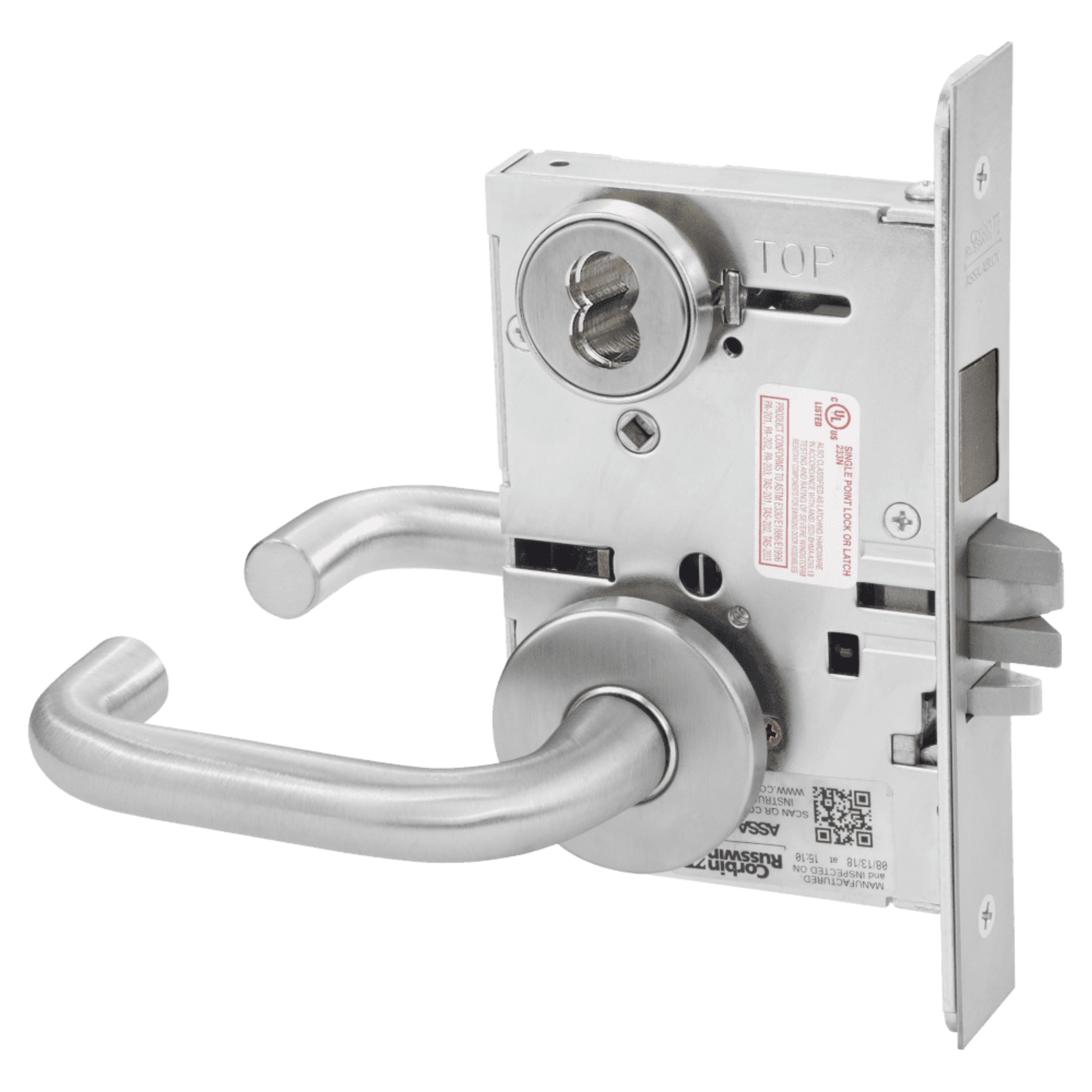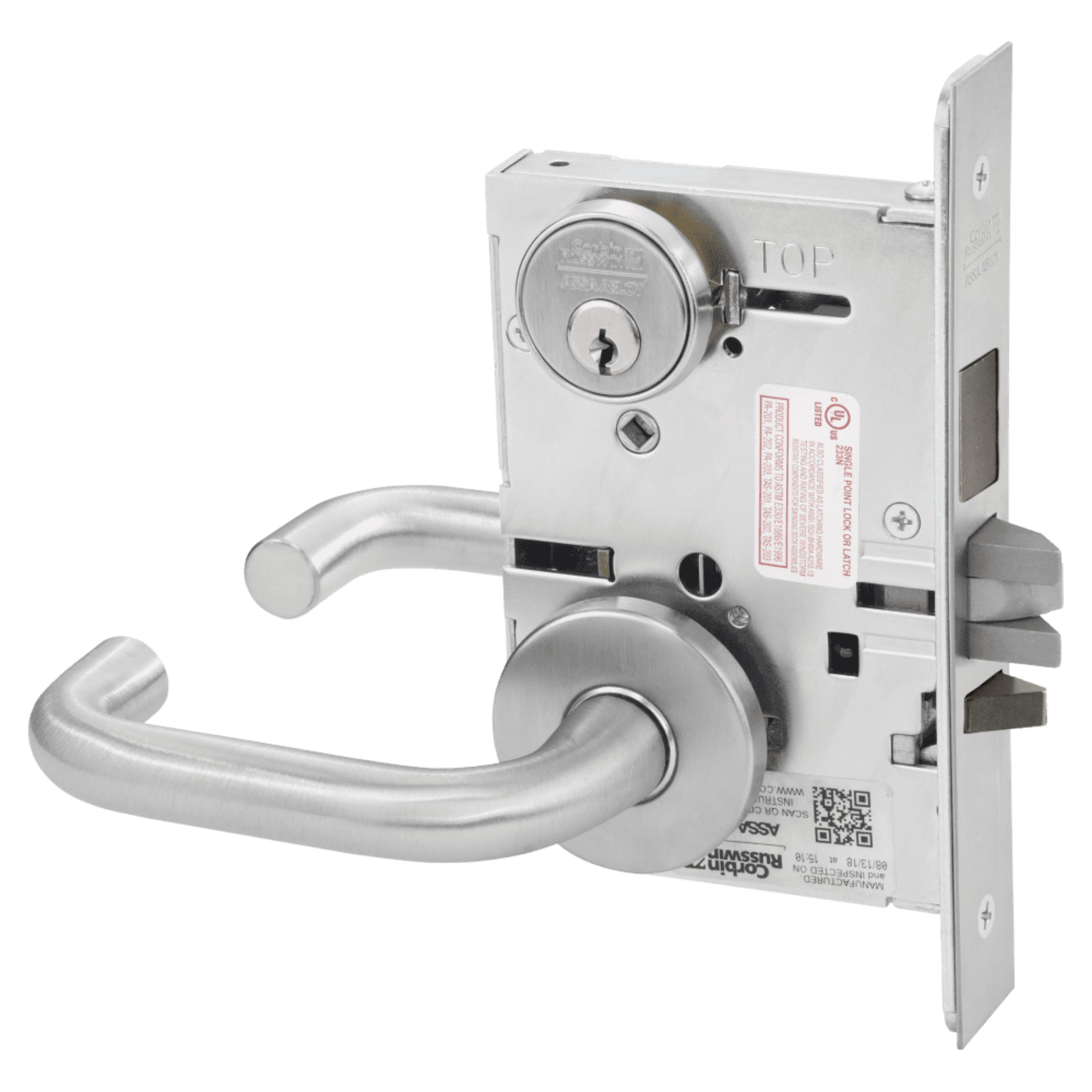 Further discourage intrusion and abuse with the ML2000VR (Vandal Resistant) Series mortise lock featuring vandal-resistant stainless steel escutcheons with tapered edges and Torx® pin tamper resistant screws. When matched with Corbin Russwin patented high-security Pyramid or Access 3® cylinders, any door can become a formidable barrier to intruders.