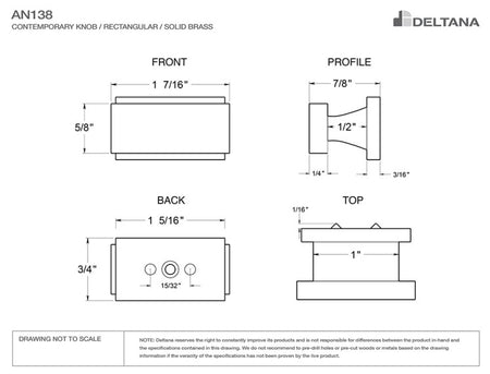 Deltana AN138 Contemporary Knob, Anvil, 3/4" x 1-1/2" x 7/8"