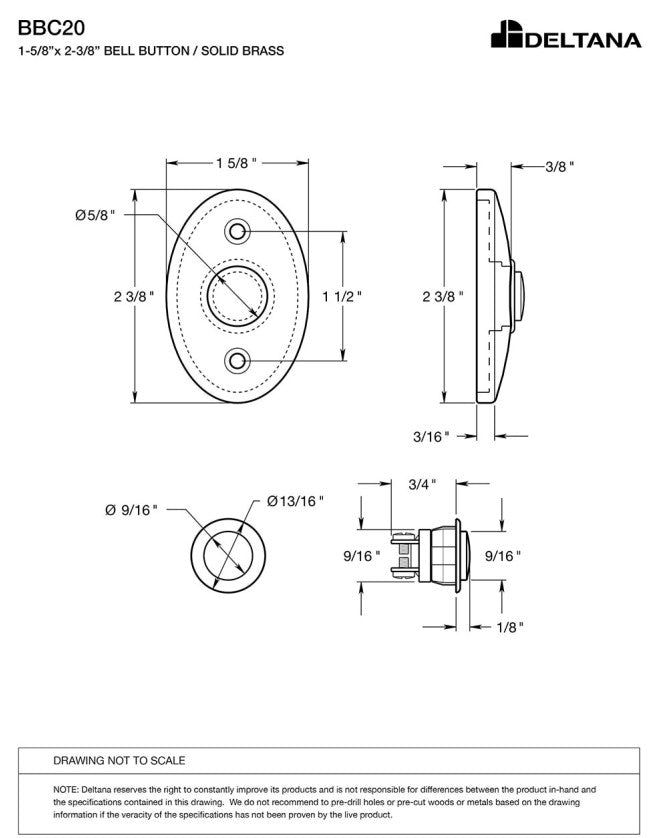 Deltana Bell Buttons are offered in various Solid Brass designs and available in an array of fine finishes.