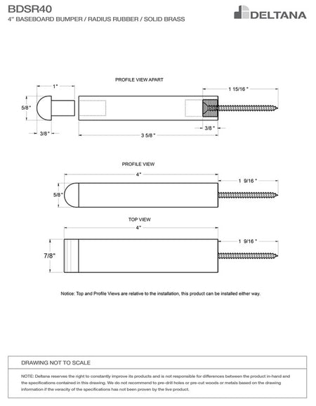 Deltana BDSR40 4" Contemporary Half-Cylinder Tip Baseboard Bumper, Solid Brass