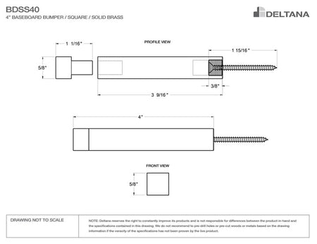 Deltana BDSS40 4" Modern Square Baseboard Bumper, Solid Brass