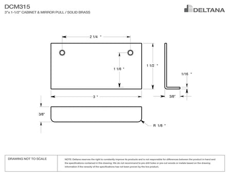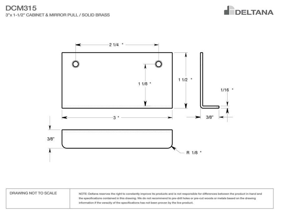 Deltana DCM315 Drawer, Cabinet, Mirror Pull, 3" x 1-1/2"
