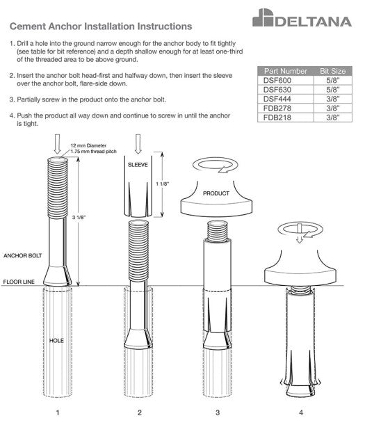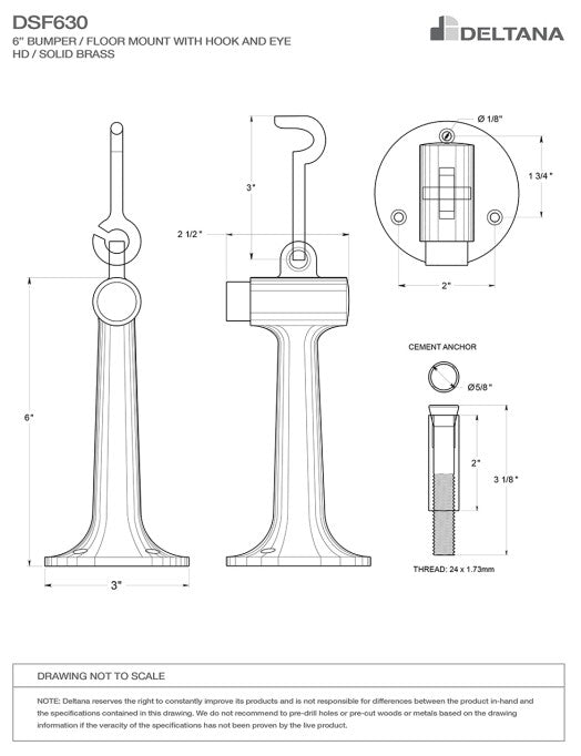 Deltana DSF630 Floor Mount, 6" Bumper with Hook