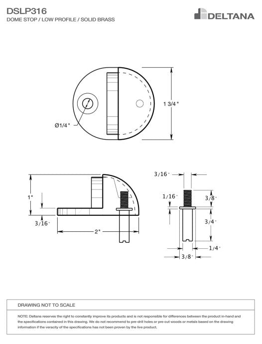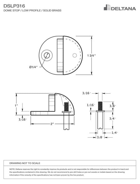 Deltana DSLP316 Low Profile Dome Door Stop, Solid Brass