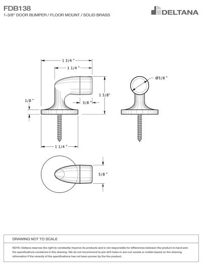 Deltana FDB138 Floor Door Bumper 1-3/8", Solid Brass