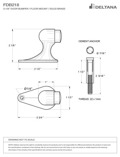 Deltana FDB218 Floor Door Bumper 2-1/8", Solid Brass