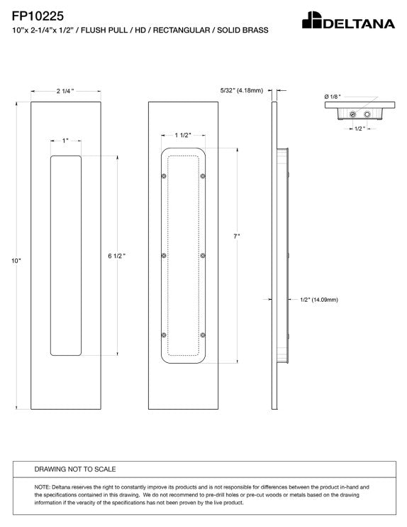Deltana FP10225 Flush Pull, Rectangular, Heavy-Duty, 10" x 2-1/4" x 1/2", Solid Brass