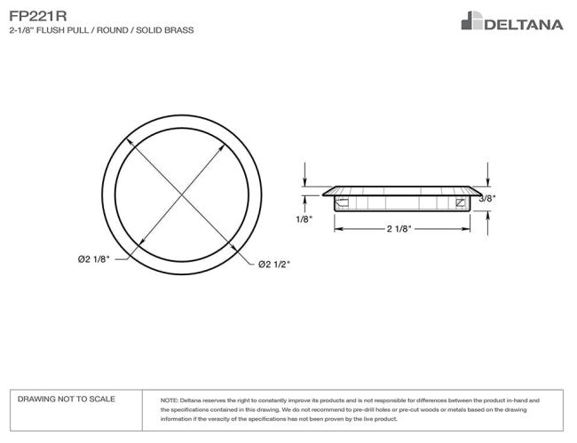 Deltana FP221R Flush Pull, Round, 2-1/2" Diameter
