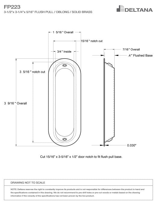 Deltana FP223 Flush Pull, Oblong, 3-1/2" x 1-1/4" x 3/8"