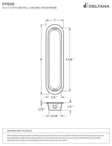 Deltana FP828 Flush Pull, 4" x 1" x 1/2"