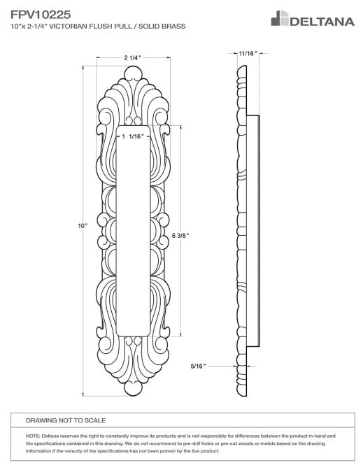 Deltana FPV10225 Flush Pull, Victorian, Heavy Duty, 10" x 2-1/4" x 3/4", Solid Brass