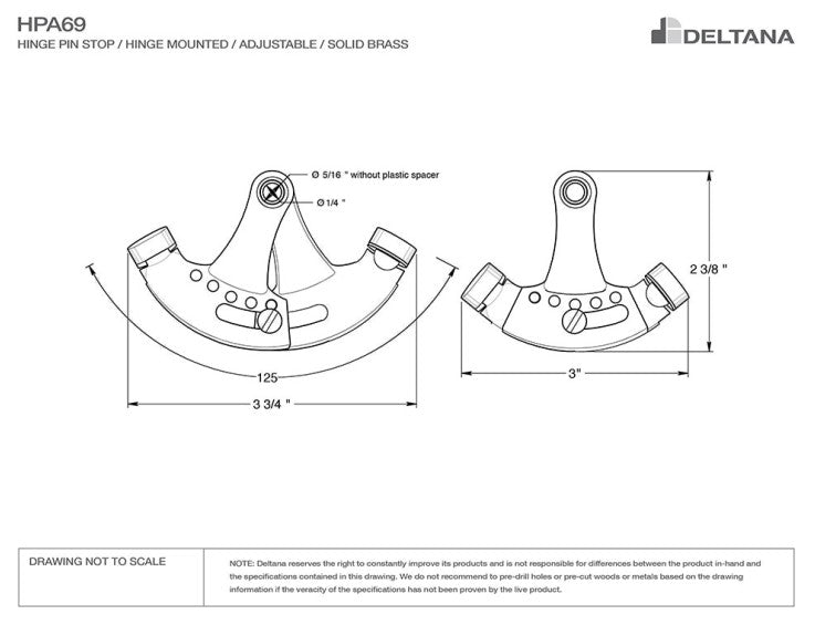 Deltana HPA69 Hinge Pin Stop, Hinge Mounted, Adjustable