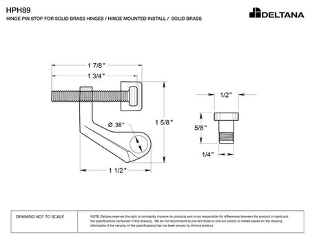 Deltana HPH89 Hinge Pin Stop, Hinge Mounted for Brass Hinges