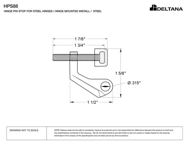 Deltana HPS88 Hinge Pin Stop, Hinge Mounted for Steel Hinges